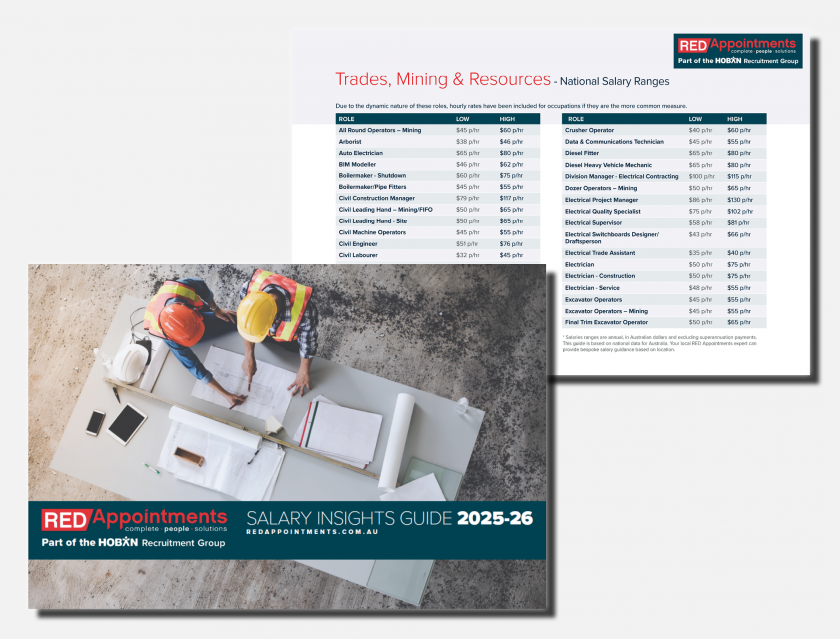 As part of the HOBAN Recruitment Group—one of Australia’s most trusted generalist recruitment providers—RED Appointments has access to extensive industry data and insights. This means we can provide you with accurate, up-to-date salary benchmarks across a broad range of sectors.